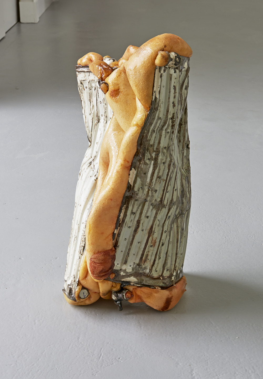 2 radiators, rust printed upholstery foam, resin and Lacquer
